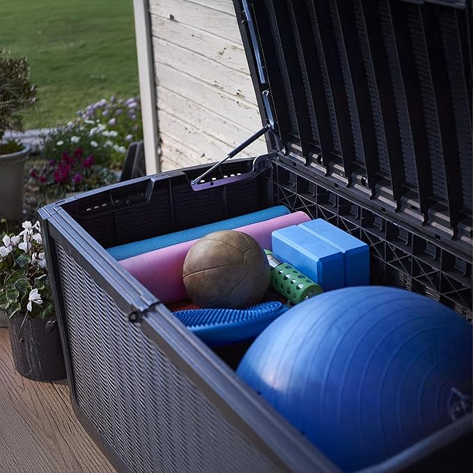 - Durable & Weather-Resistant: Made from polypropylene resin, this storage unit withstands severe weather without fading, peeling, rotting, or rusting.