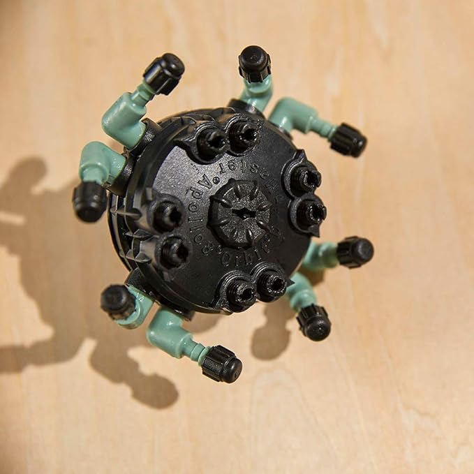 - VERSATILE: Eight, 1/4 inch barbed ports with threaded caps to close ports not in use. Elbows rotate 360 degrees for easier line placement