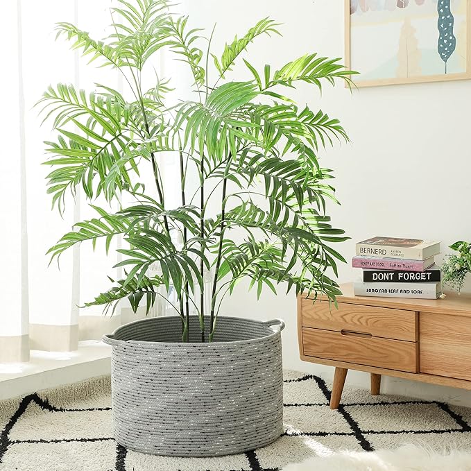 - ⭐【100% NATURAL HANDMADE】:100% cotton rope,soft material without any chemicals woven basket. There are No plastics. No harsh chemicals. Our basket is soft and safe for kids and pets.our rope baskets are super durable and hold their shape well. they can be hand washed / air dried or put in your washer / dryer on delicate.