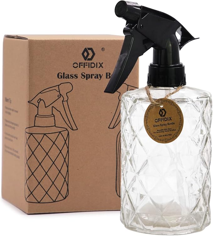 OFFIDIX Glass Spray Bottle, Plant Mister,Pressure Watering Can, Water Spray Bottle with Adjustable Nozzle, 0.35L/11.8oz Handheld Spray Bottles for Outdoor Indoor Garden, Plants, Cleaning Solutions