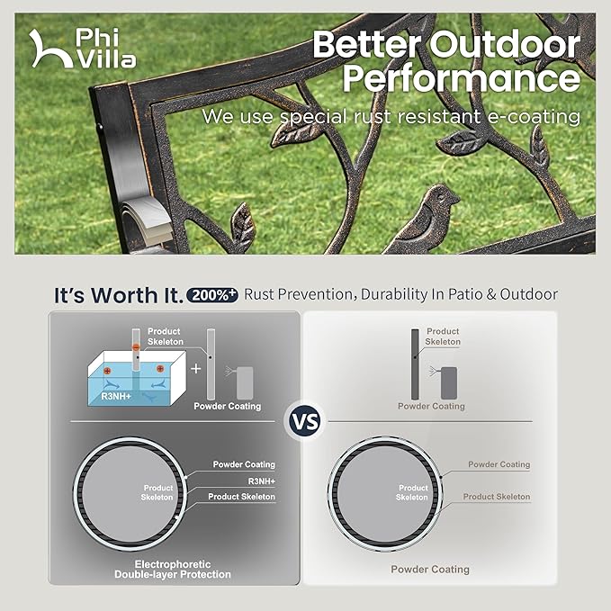- 【Sturdy and Rust-Resistant】The Garden Bench is powder coated with rust-resistant finish, super smooth. This garden bench is made of cast iron backrest and metal frame,which is stable and sturdy for long-term use, durable and the Metal Bench perfect for use for years.
