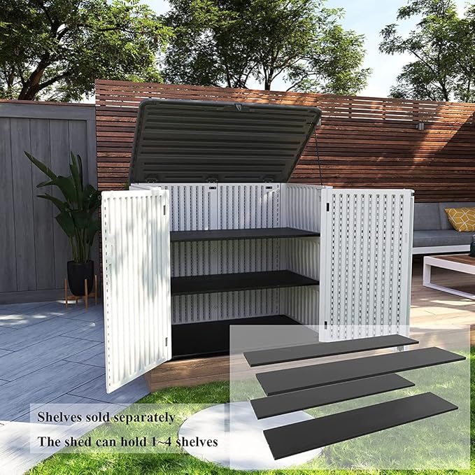 - 【To Enhance Its Usability】— We provide additional accessory kinying black metal laminate shelves to enhance its usability, but the shelves need to be purchased separately. The shed can hold 1~4 shelves, just according to actual use needs to decide whether to purchase or not, or purchase quantity.