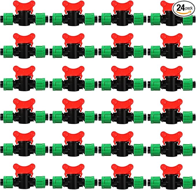 - Package Contents: you will receive 24 pieces of drip irrigation valves, which are decorated in classic red, green and black, the classic colors can make these valves look more attractive