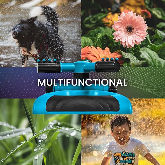 - Weighted Base: The Joeys rotating sprinkler for yard, is made of super strong ABS plastic. The weighted base keeps the sprinkler in place so it stays where you put it.
