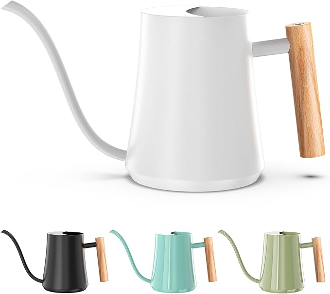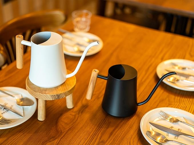 - 【COMFORTABLE WOODEN HANDLE】Our indoor watering can has a round comfortable wooden handle. It is easy to grasp and won't hurt your hands. Also, our stainless steel watering can has a built-in open-top design, which is convenient for refilling water.an exquisite and light body design, our watering pot serves as a decoration.