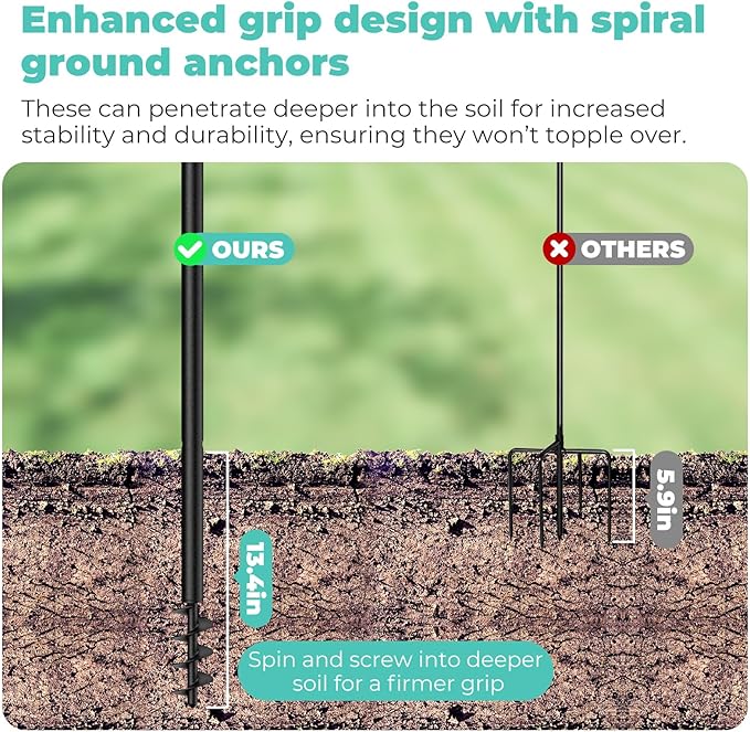 - BEAUTIFUL AND PRACTICAL: Featuring a curved hook on top and a spiral base design, this hook is easy to install. It's great for hanging flower pots, bird feeders, lanterns, and wind chimes, enhancing the beauty of your garden or backyard