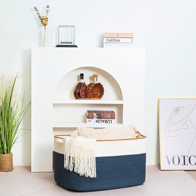 - Multi-purpose Woven Basket Organzier - This versatile cotton rope basket with handles can serve various purposes, from a laundry basket to a pool towel storage basket, a pillow storage basket, a shoe basket bin for entryways, a blanket storage basket for living rooms, to a dog toy storage basket bin box.