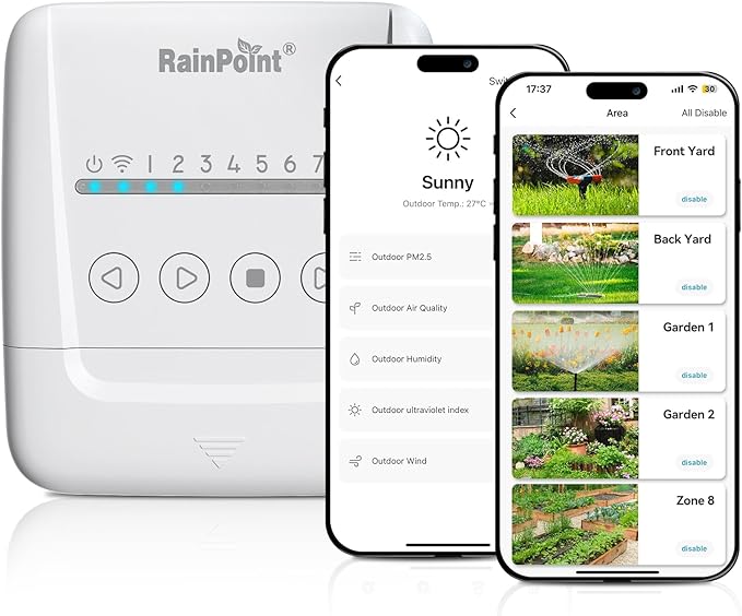 - Year-round Protect Your Yard: Even during power outages, our smart sprinkler controller retains programming and automatically resumes once power is restored. Data remains intact, and the controller continues to operate the next scheduled plan even if the WiFi connection is lost. Set it up and forget it - RAINPOINT will take care of the rest!