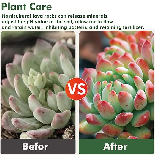 - Long-lasting Used: Unlike organic mulches, horticultural lava rocks won’t degrade over time. Enjoy a one-time investment that keeps your soil well-conditioned and your plants thriving year after year.