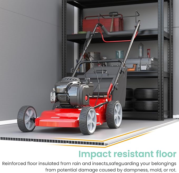 - DOUBLE-WALL CONSTRUCTION: Steel-reinforced dual-wall and an impact-resistant floor are designed for long-term durability, anti-insect, anti-corrosion, and better waterproof effect. (Maximum Wind resistant grade: 6 (24-30 mph); Maximum snow thickness tolerance: 6 inches)
