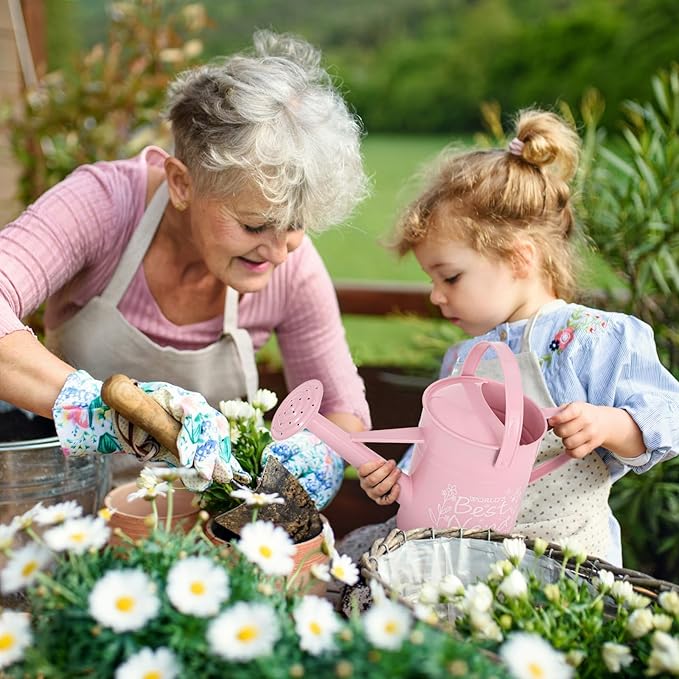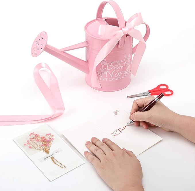 - GARDENING GIFTS FOR NANA: This lovely gift set is perfect for any nana who loves gardening! It includes a 1/2 gallon watering can, a pink ribbon, and a greeting card, so you can add your own personal touch. We think the best nana ever watering can will be the perfect gift for Christmas, Mother's Day, anniversary or birthday.