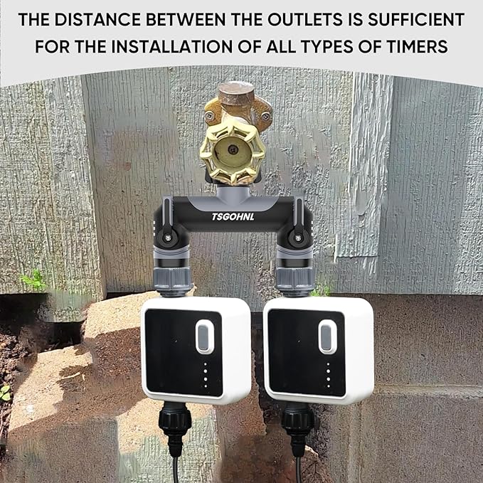 - 2: For simultaneous use of multiple garden irrigation system timers or large timers, we have expanded the spout spacing to 3.1 inches.