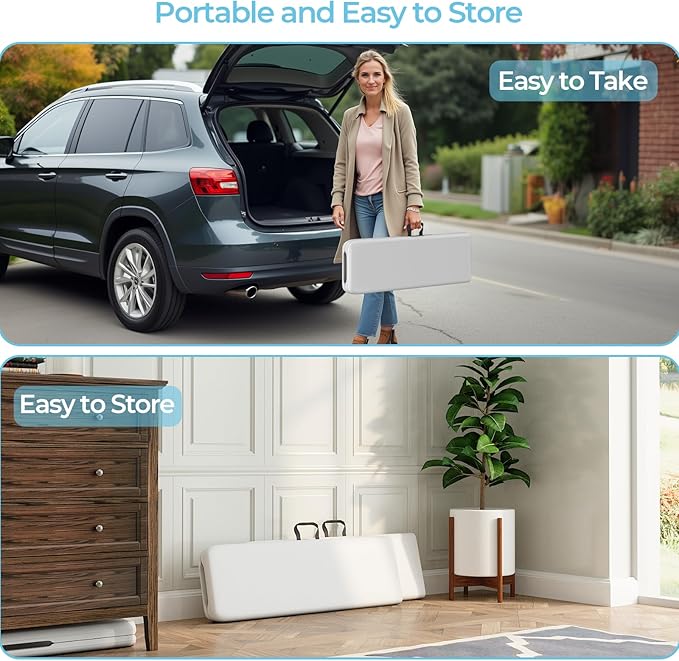 - Easy to Store and Carry: The outdoor folding bench folds in half to save storage space, and the folded bench measures 72'' x 11'' x 17'', making it perfect for tight or limited storage areas, such as the car trunk. The folding bench comes with a convenient carrying handle, perfect for indoor and outdoor use, and very easy and effortless to carry.