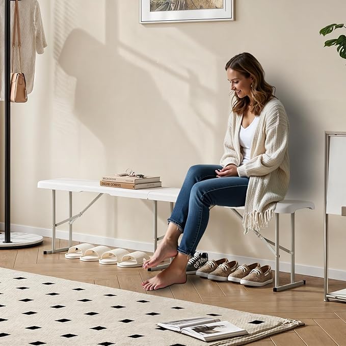 - No Assembly Required: With a customer-friendly design style, the plastic folding bench you receive comes fully assembled, so there is no need for any additional accessories or tools and you can start using it as soon as you receive it. You can easily open it and use it anytime, anywhere. It is very easy to open and fold, convenient to use.