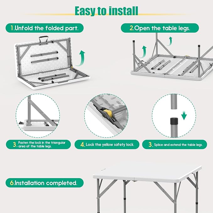 - Portable & Convenient: With a compact, foldable design, this plastic folding table comes with handles can be easily transported and stored, making it an ideal choice for on-the-go use and storage