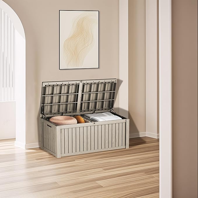 - Wide Range of Use: With a capacity of 180 gallons, this storage box can also be used as a patio seat, storage bench or footstool, whether it's family party supplies, camping equipment, gardening tools.