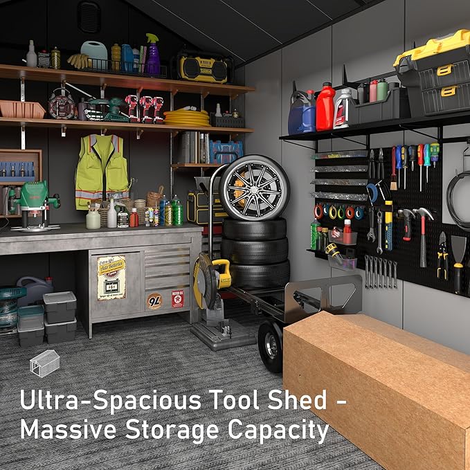 - Spacious 8x12 FT Outdoor Storage Solution: Designed to hold everything from lawn mowers and garden tools to bikes, pool supplies, and trash bins—ideal for organizing your outdoor essentials in one secure place.