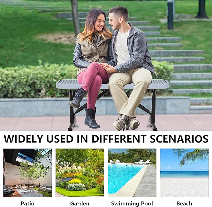 - Features: Available in different specifications, the spacious space can accommodate multiple people to sit comfortably together. The portable heavy-duty steel bench can be adapted to all seasons, suitable for different weather and occasions.